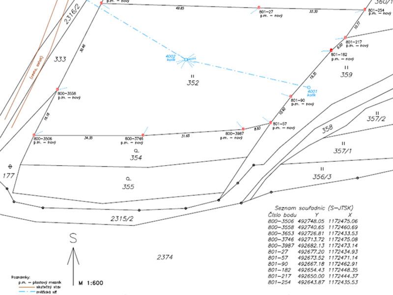 Koupili jste pozemek či si chcete ujasnit hranice svého pozemku? Vytyčování hranic je činnost, při které vám v terénu vyznačíme lomové body hranic pozemku.